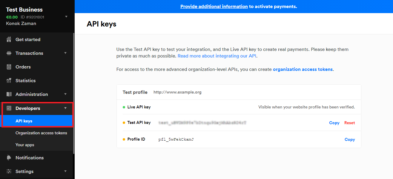Mollie API Key: If you want to integrate the Mollie payment method then you’ve to put your Mollie API key. Visit Mollie and go to Settings > API Keys & Webhooks and copy your key id and key secret and paste into the corresponding field.